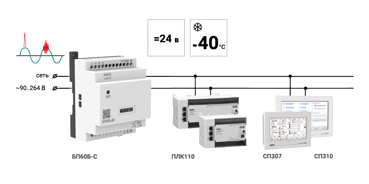 Преимущества блоков питания для тяжелых условий эксплуатации ОВЕН БП30Б-С, БП60Б-С, БП120Б-C: