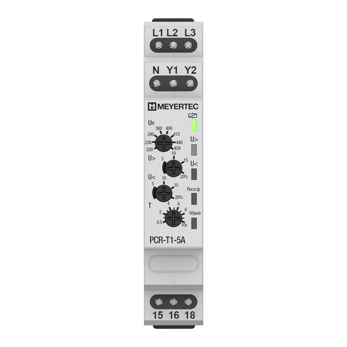 Модульное реле контроля фаз MEYERTEC PCR предназначено для надёжного контроля параметров трёхфазной сети до 1000 В.