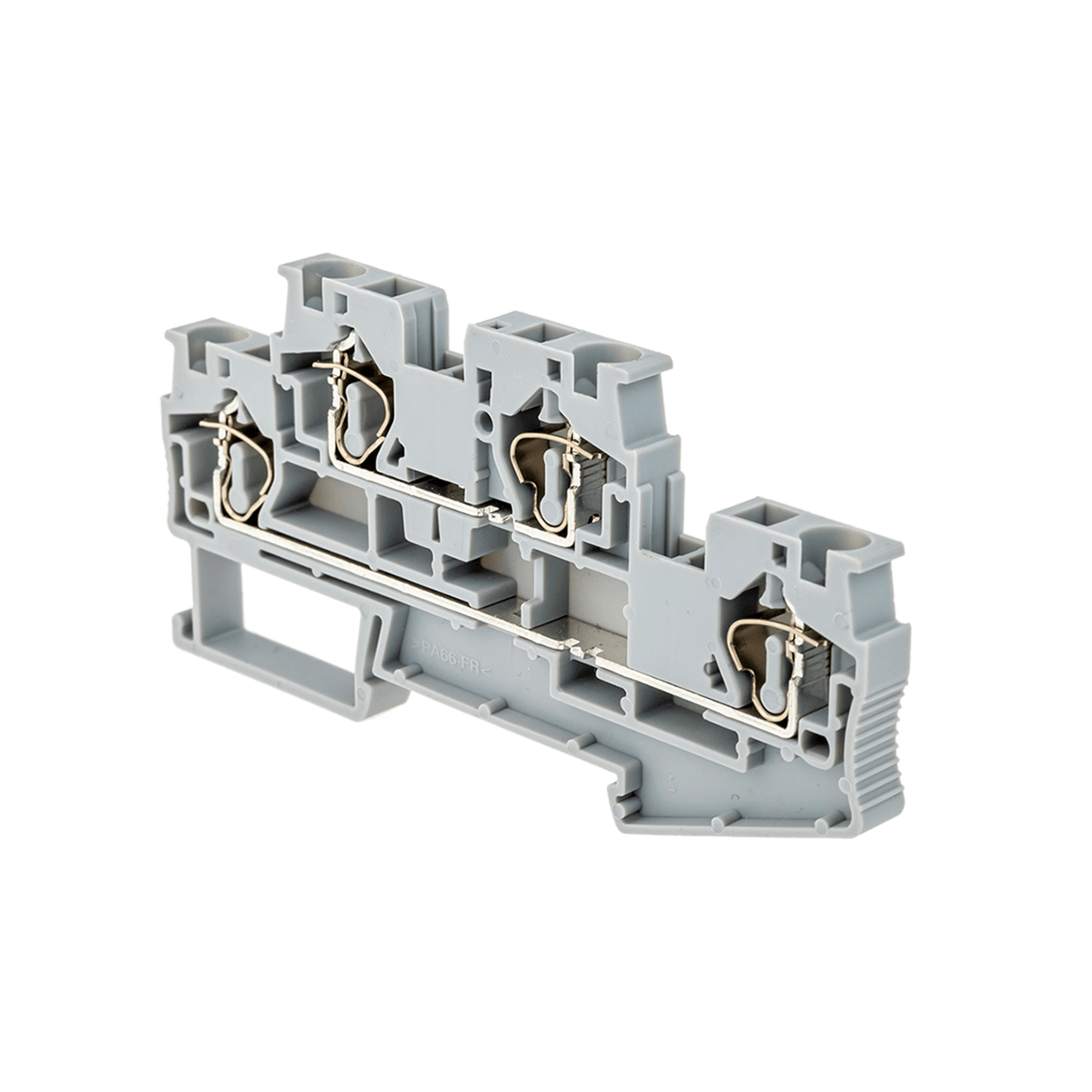 Двухуровневые пружинные клеммы MTS-D4 применяются в шкафах автоматики с высокой плотностью монтажа для экономии места на DIN-рейке. Оба уровня имеют монтажное отверстие для установки перемычек.