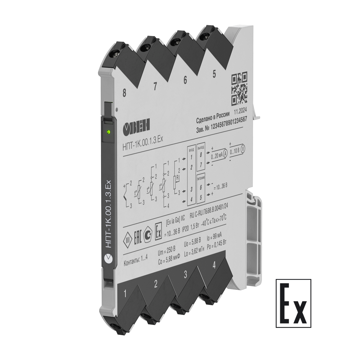 Преобразователь легко интегрируется в системы промышленной автоматизации. Благодаря компактному корпусу НПТ-1К Ех занимает минимум места на дин-рейке – всего 6,1 мм.