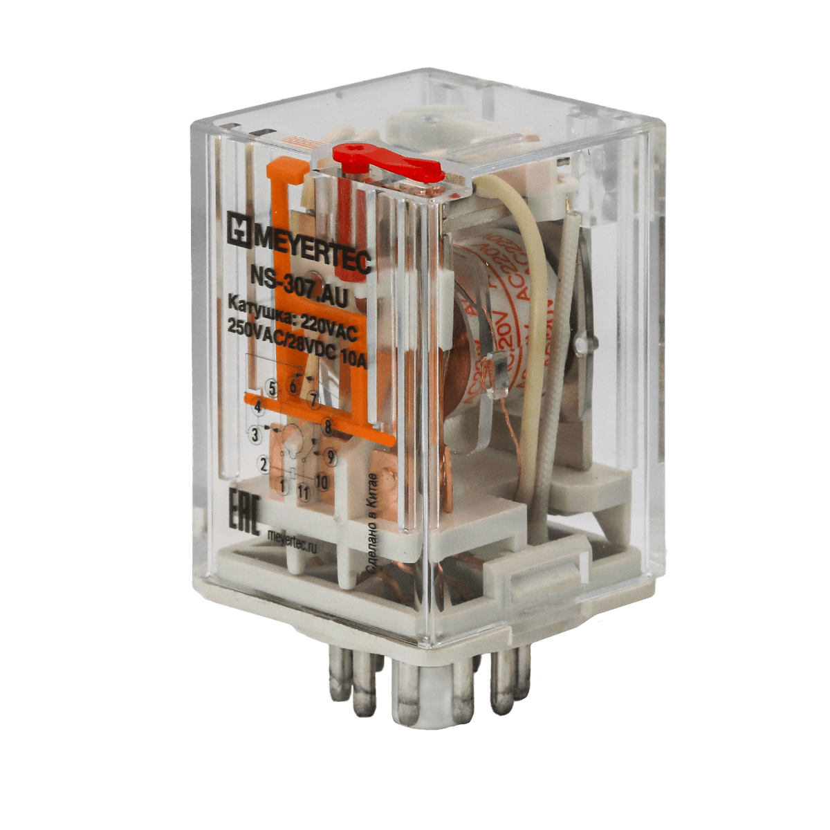 - Прозрачный корпус, позволяющий чётко видеть состояние контактов реле