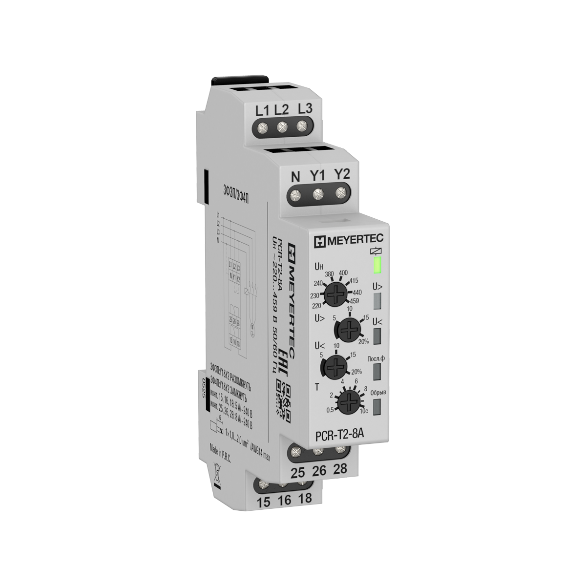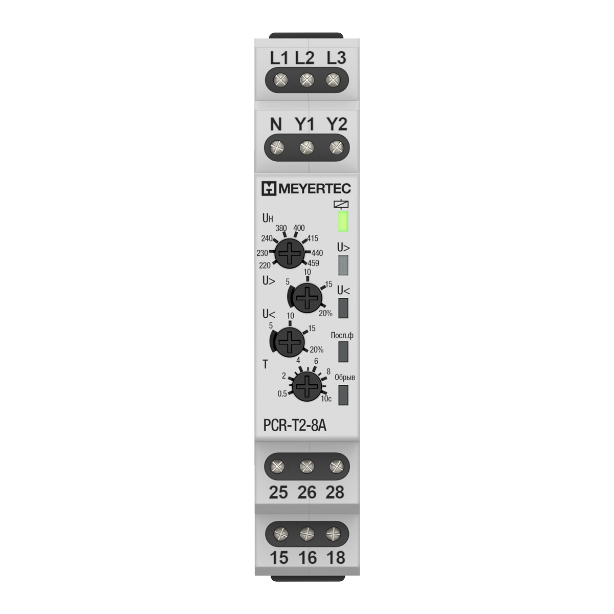 Модульное реле контроля фаз MEYERTEC PCR предназначено для надёжного контроля параметров трёхфазной сети до 1000 В.