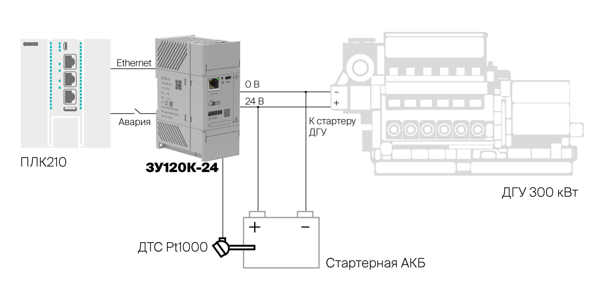 Зарядные устройства ОВЕН ЗУ120К и ЗУ100К предназначены для непрерывного подключения к аккумуляторным батареям и поддержания их в режиме постоянной готовности. В составе щита управления устройства могут использоваться для работы с дизельными, бензиновыми и газовыми электростанциями для заряда стартерных свинцово-кислотных АКБ или для питания различного промышленного оборудования с зарядом литиевых АКБ.